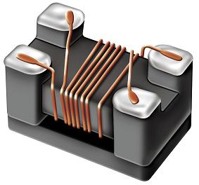 Small chip inductor with ferrite core and two line types wire wound.